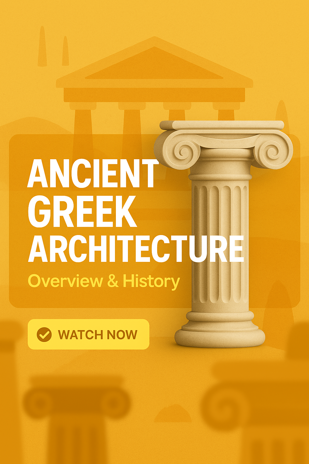 /Collection: /by davooda/Type: PNG/Informative graphic featuring a stylized Greek column against a vibrant yellow background, ideal for educational content on architecture. The design includes a call-to-action for viewers.