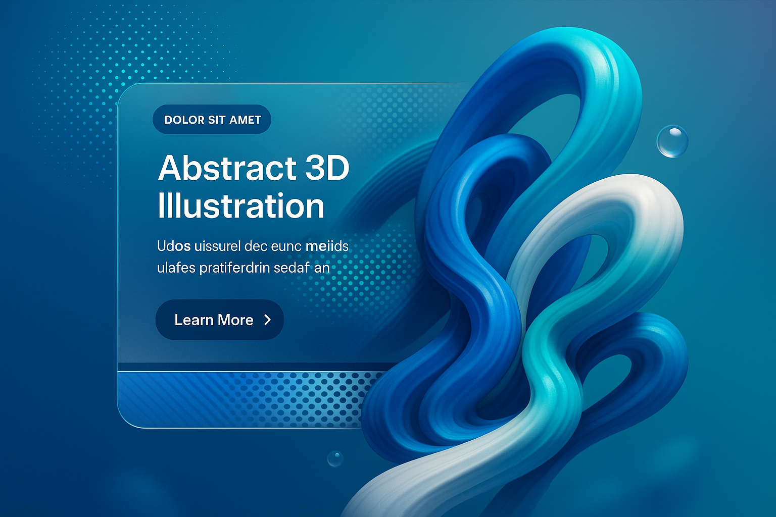 /Collection: /by davooda/Type: PNG/This image features a vibrant landing page design with a prominent 3D abstract illustration in blue and white tones, complemented by a smooth gradient background.