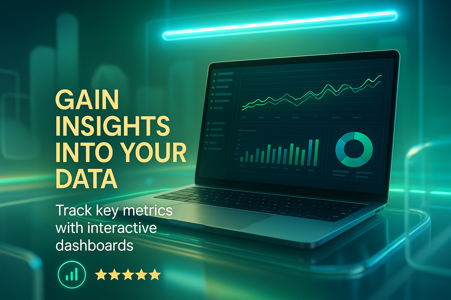 /Collection: /by davooda/Type: PNG/A sleek digital marketing graphic showcasing data analytics capabilities. It features a laptop with interactive dashboards and vibrant neon elements, aimed at tech-savvy audiences interested in data-driven insights.