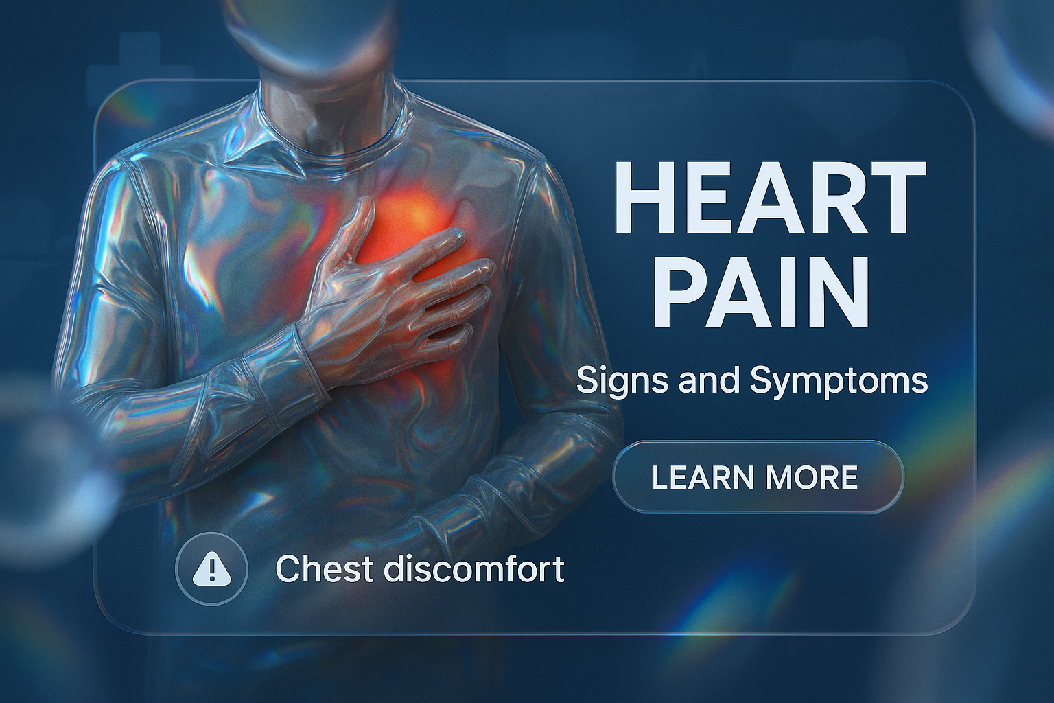 A visually engaging healthcare graphic illustrating the signs and symptoms of heart pain, designed to inform and educate audiences about health issues.