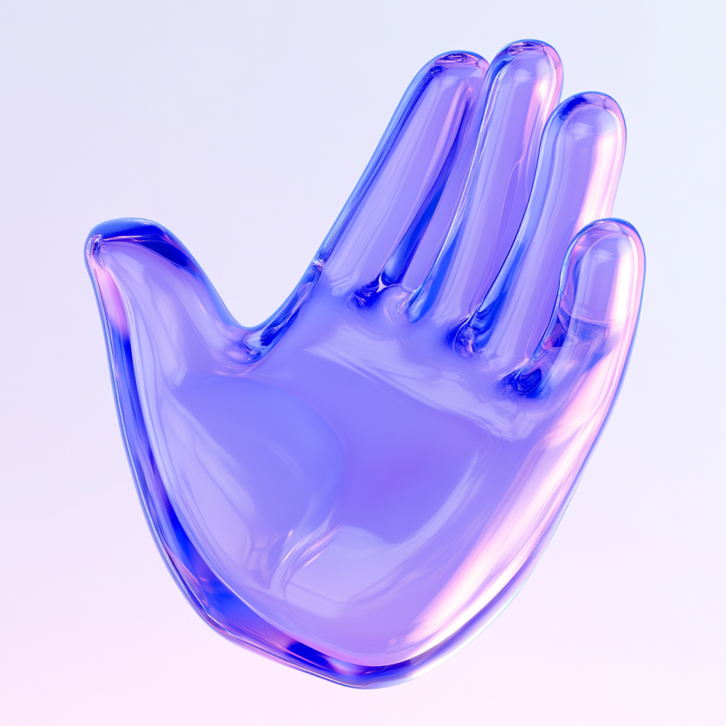 A modern 3D rendering of a transparent hand in a purple gradient, showcasing a sleek and minimalist design suitable for digital art or product branding.