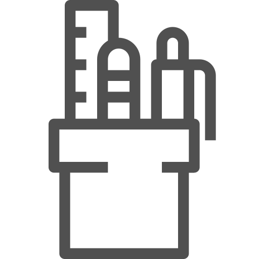 outline simple icon: desktop organizer, office supplies, pencil, ruler, scissors