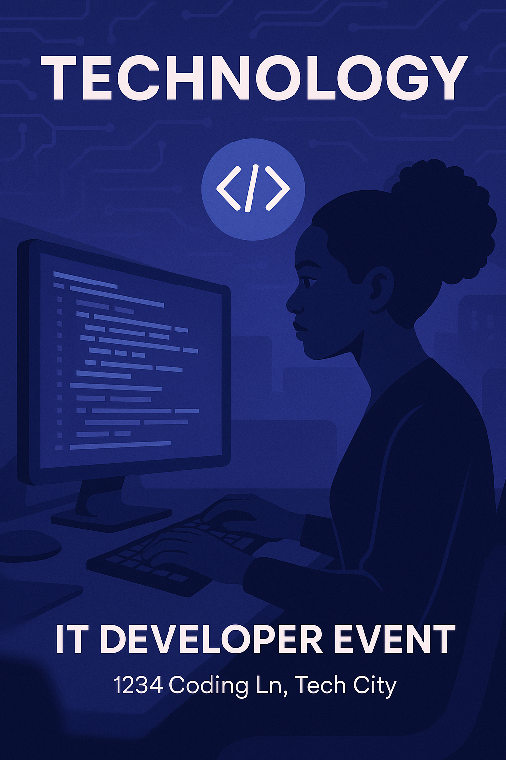 Promotional Poster for IT Developer Event Featuring Coding Theme