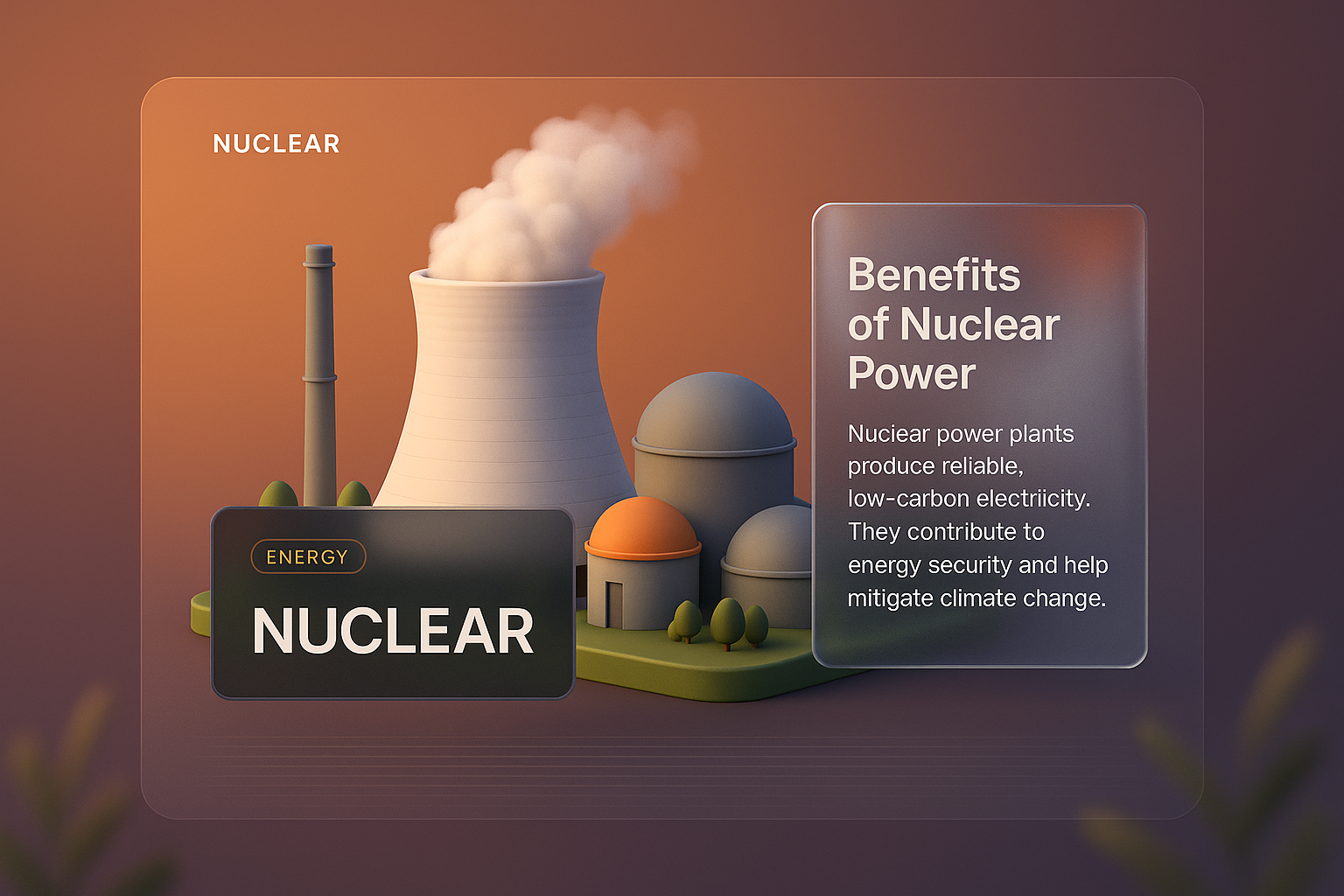 3D Illustration of Nuclear Power Benefits with Integrated Design Elements