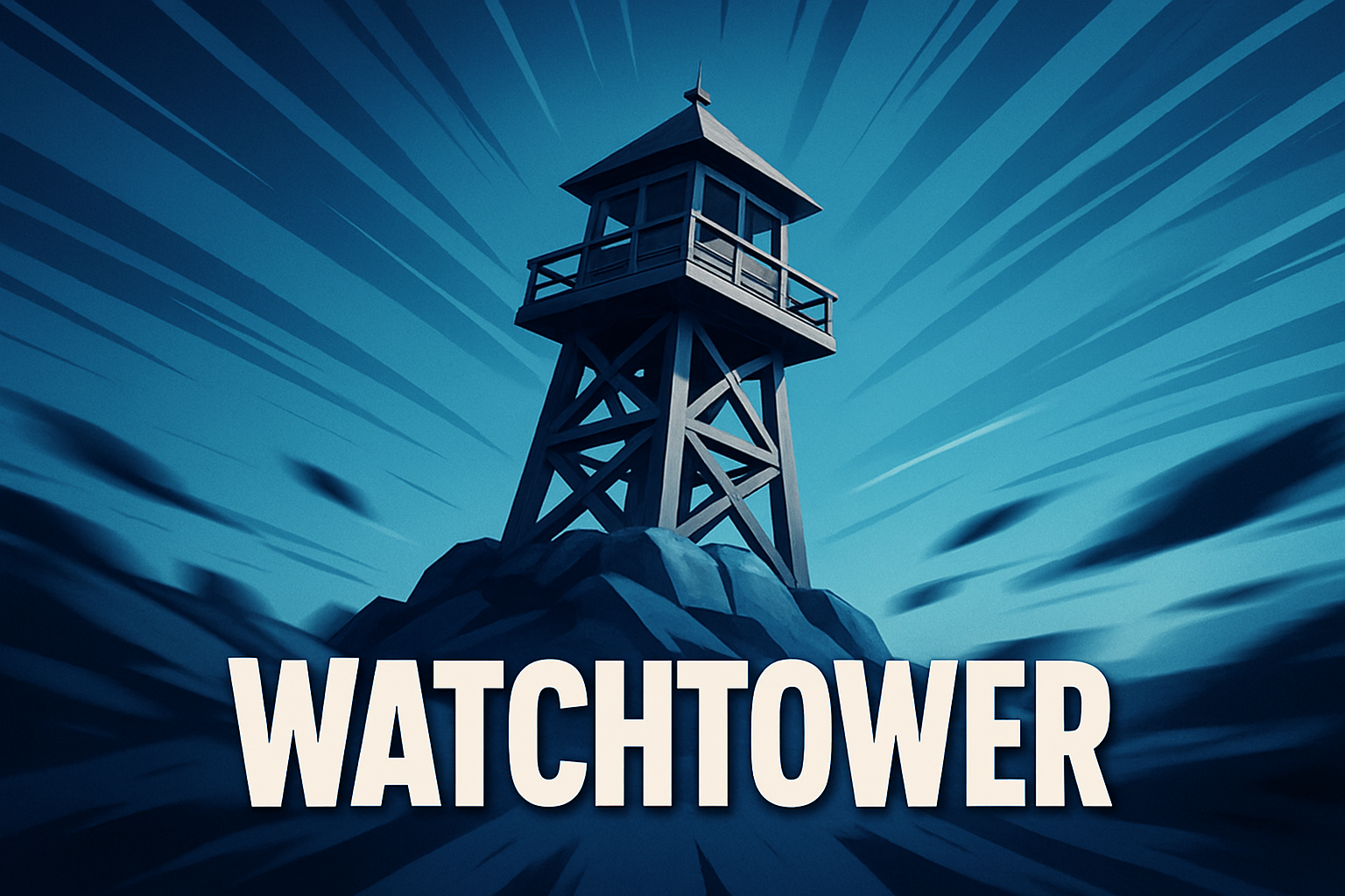 /Collection: /by davooda/Type: PNG/A striking illustration of a watchtower, featuring dynamic lines radiating from the center. The design employs a smooth gradient background transitioning to a solid color, enhancing depth and engagement.