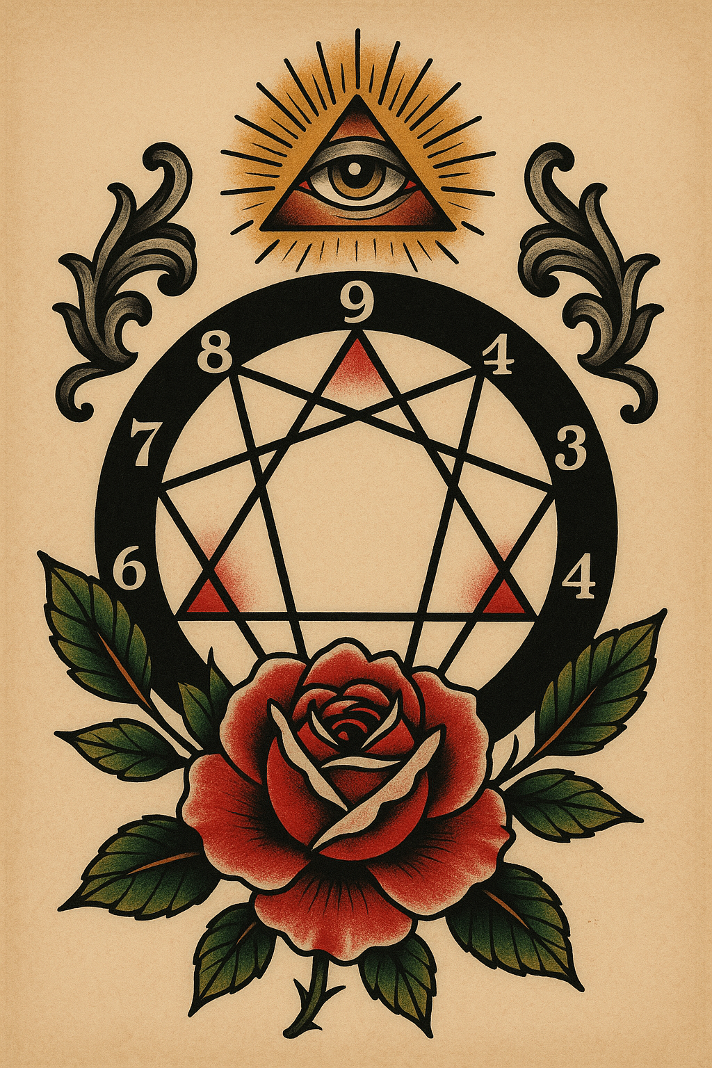 Symbolic Tattoo Design Featuring Eye, Rose, and Star