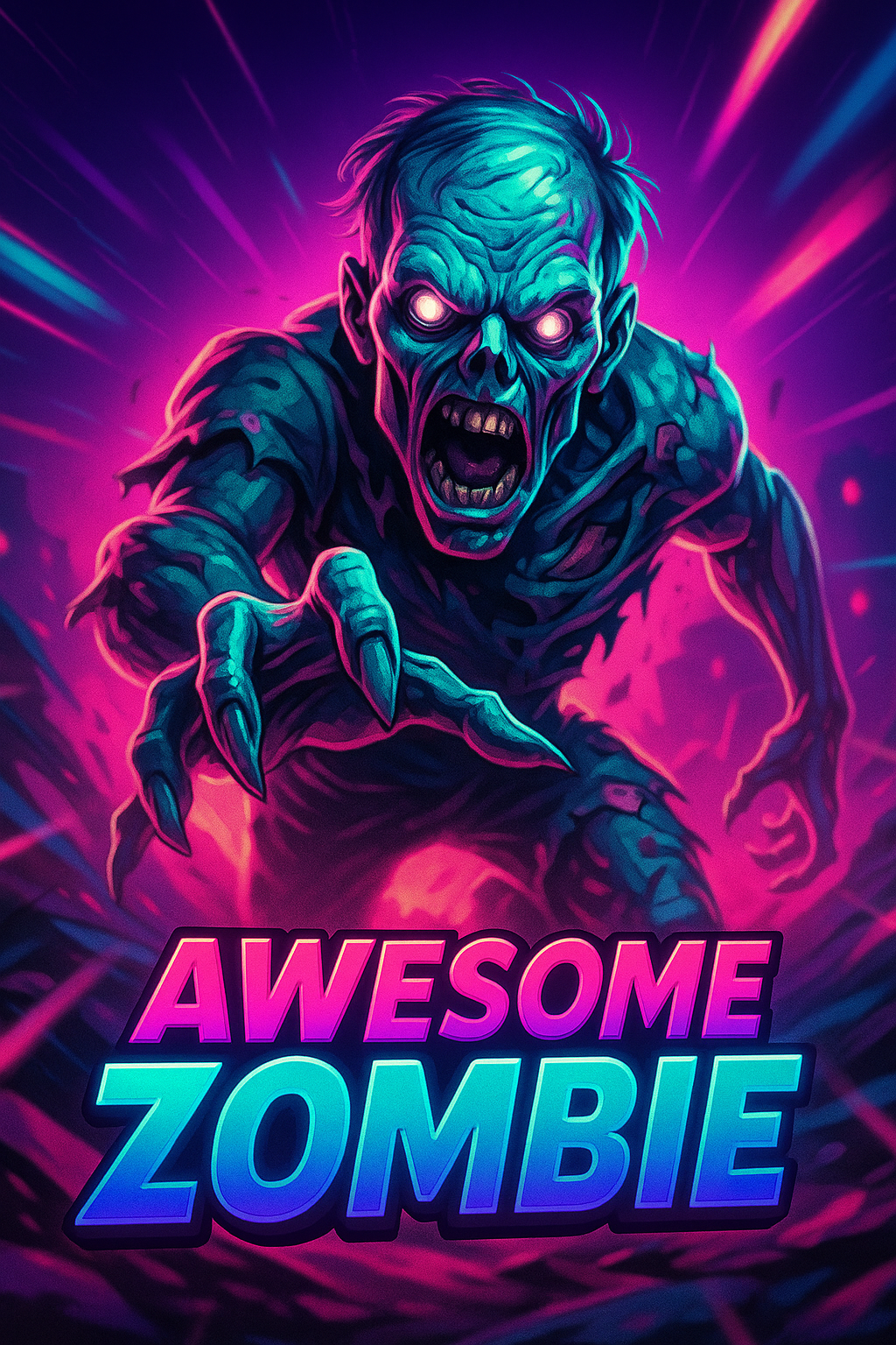 Dynamic Neon Zombie Action Illustration with Vibrant Colors