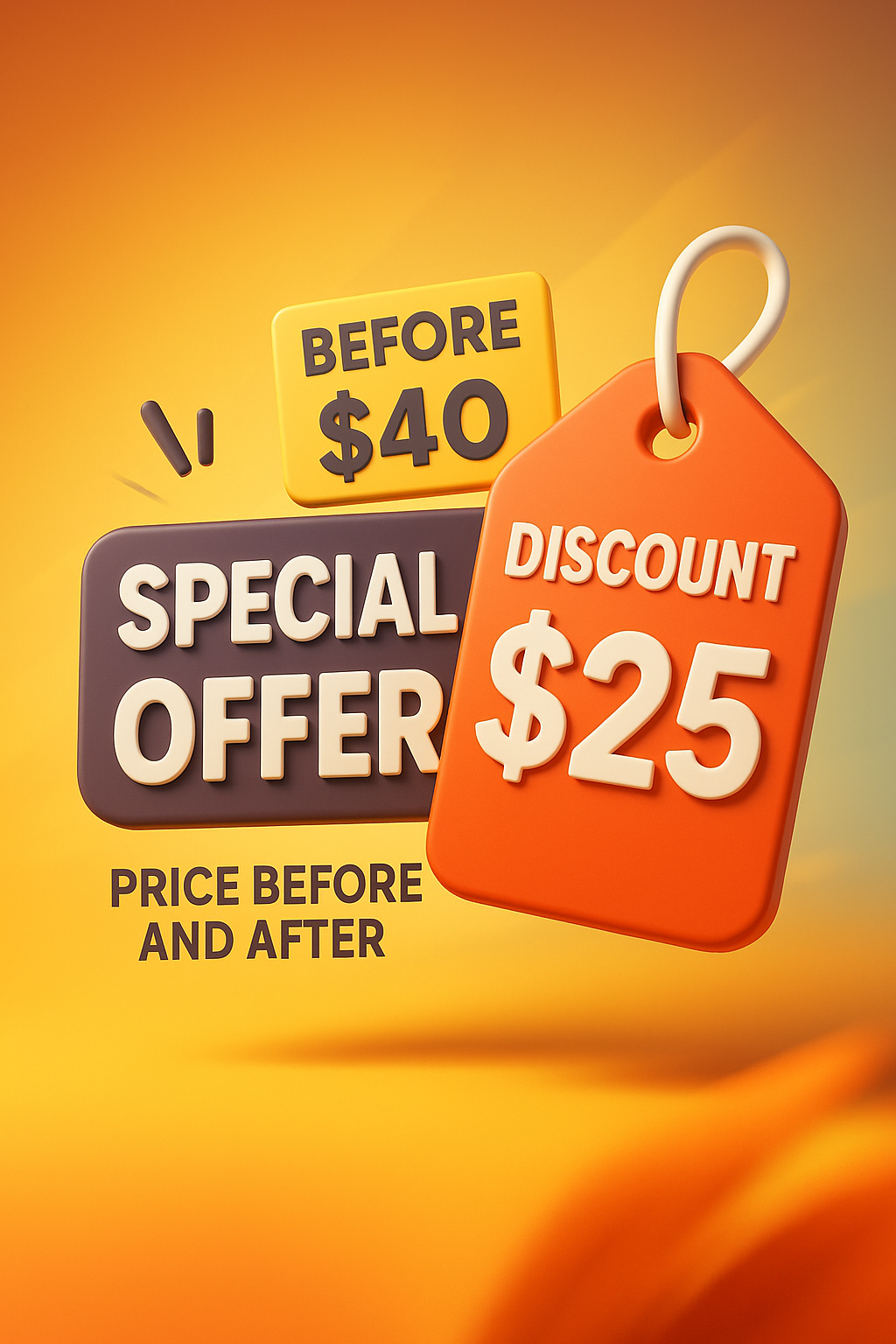 This vibrant promotional graphic highlights a special discount offer with a before-and-after price comparison, designed for marketing purposes.