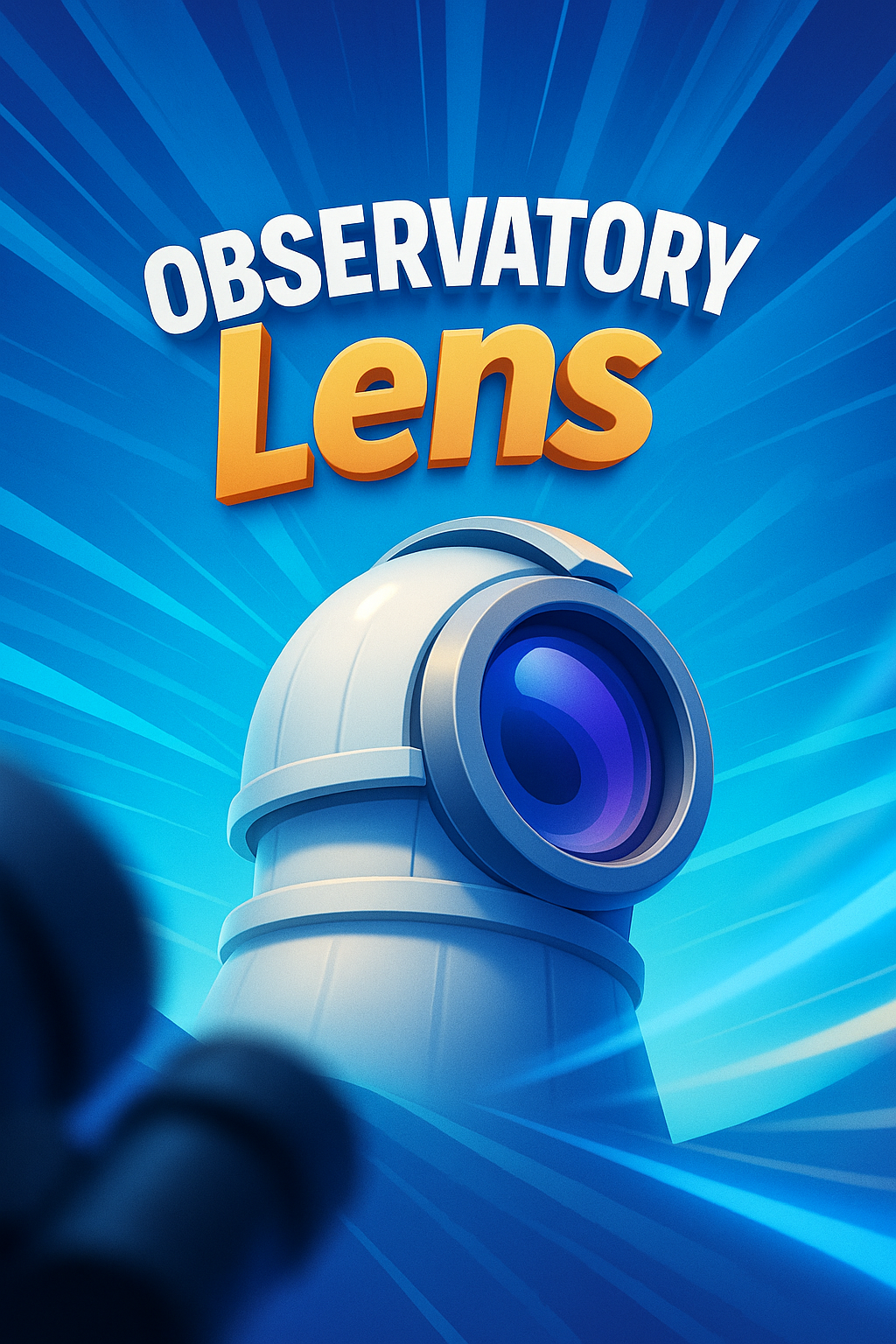 A vibrant illustration of an observatory lens, featuring dynamic rays radiating from the center. The design uses a smooth gradient background and a professional aesthetic.