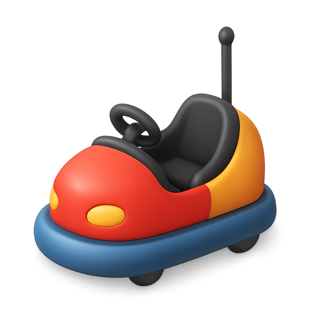 3D Bumper Car Icon with Isometric View and Vibrant Colors