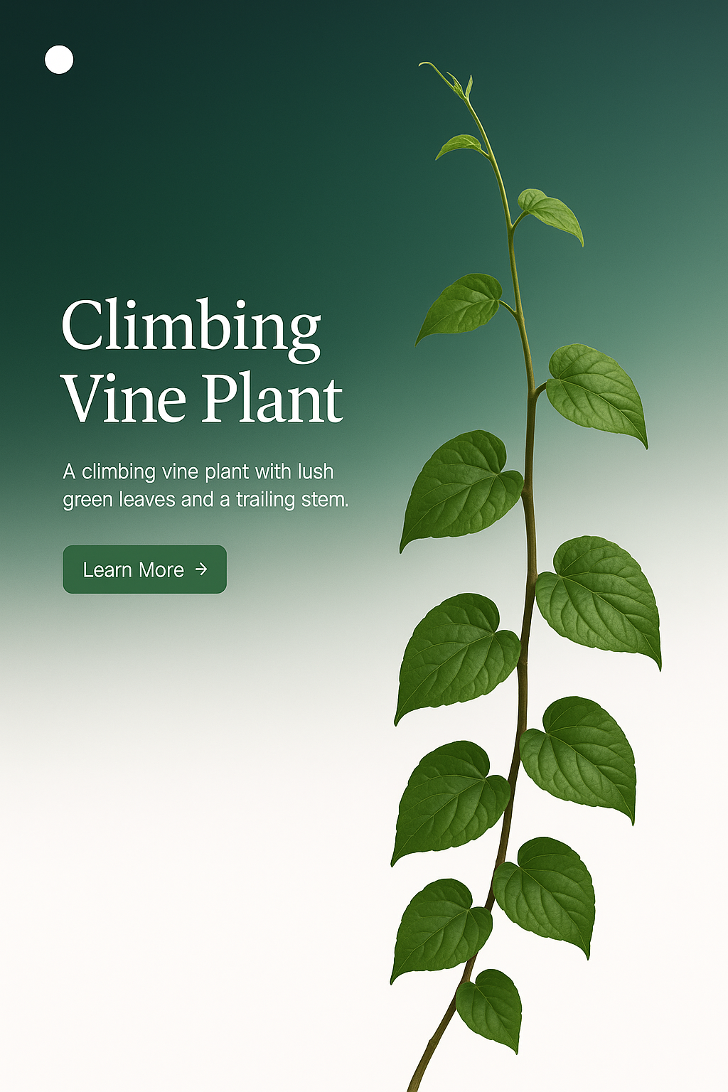 /Collection: /by davooda/Type: PNG/A realistic illustration of a climbing vine plant with lush green leaves, set against a gradient background. Ideal for web design featuring text and action buttons.