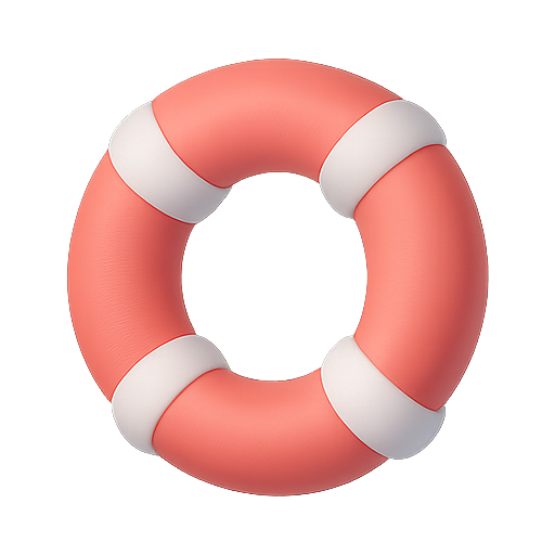 A 3D rendering of a lifebuoy ring, featuring a coral color with white accents, suitable for safety and rescue themes in various design contexts.