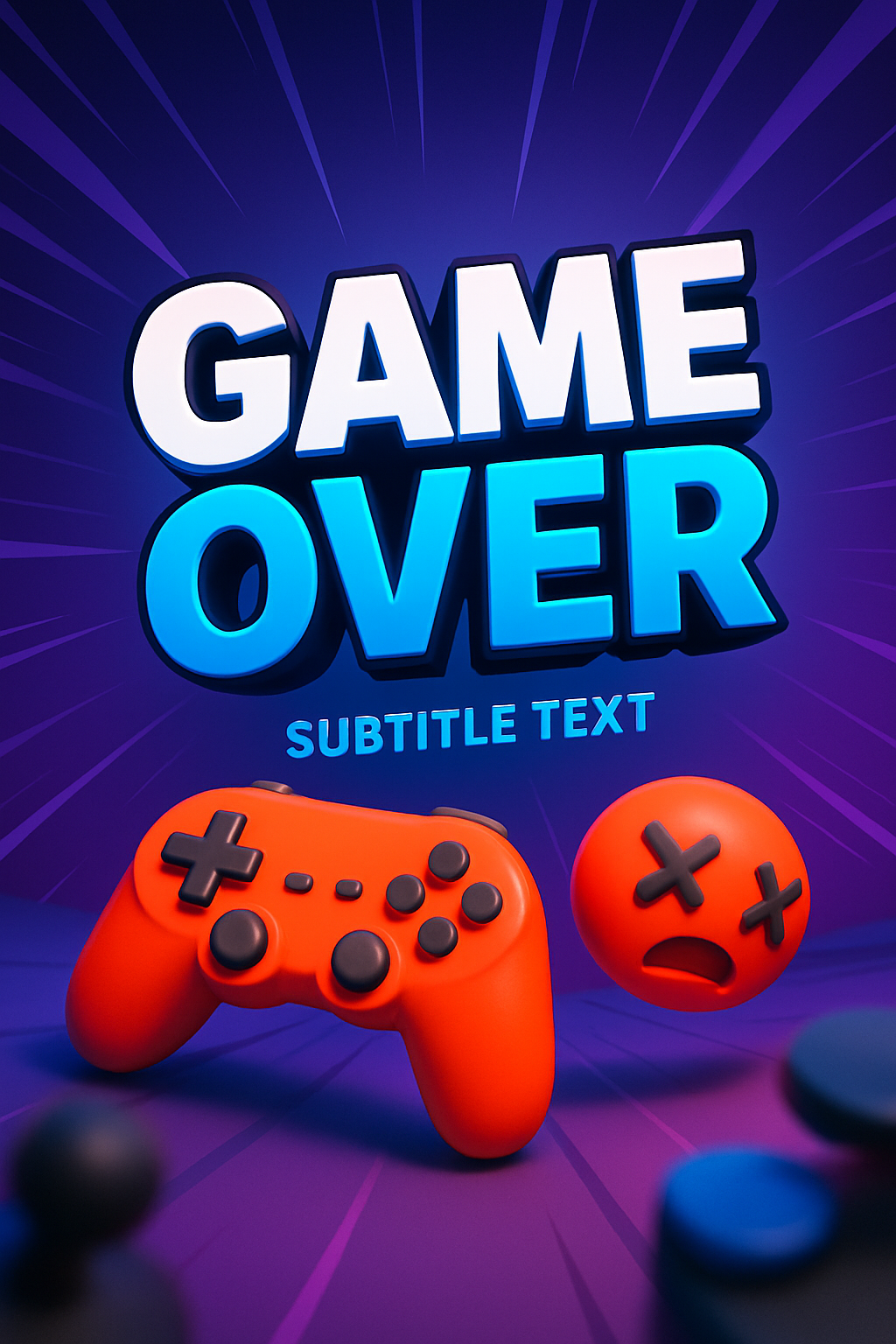 /Collection: /by davooda/Type: PNG/This is a vibrant and playful graphic featuring a 'Game Over' theme, ideal for gaming-related content. It includes a game controller and a playful icon, perfect for social media or gaming events.