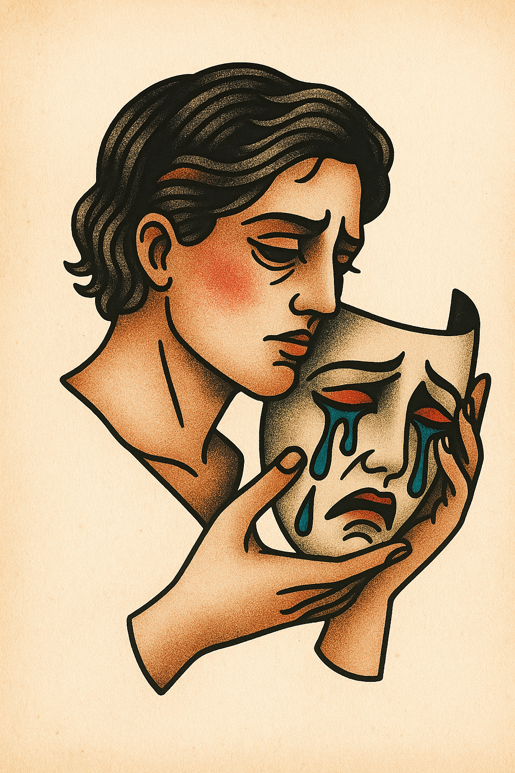Mask of Happiness with Tears: A Classic Tattoo Design