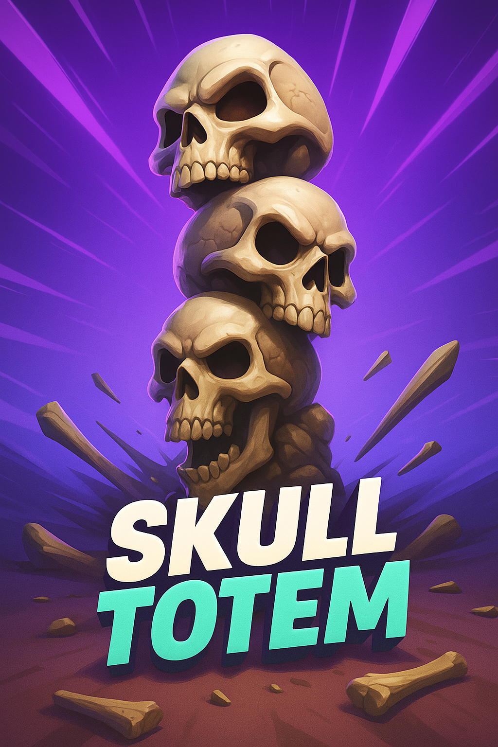 /Collection: /by davooda/Type: PNG/A striking illustration of a skull totem, featuring three stacked skulls against a vivid gradient background. Dynamic lines radiate from the center, enhancing the sense of movement.
