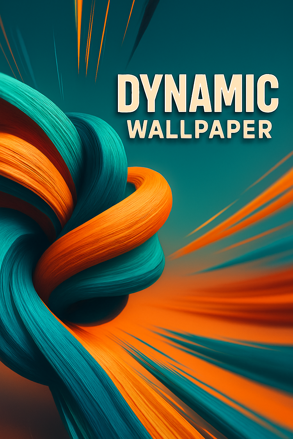 An eye-catching abstract design featuring dynamic orange and teal shapes. The bold title 'DYNAMIC WALLPAPER' stands out, enhancing the vibrant composition.