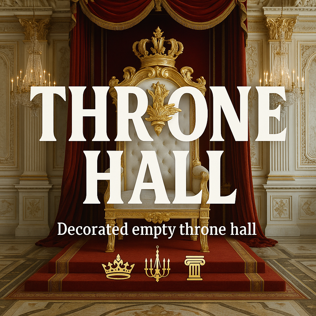 A beautifully designed throne hall featuring an ornate throne, luxurious decor, and rich color contrasts, ideal for historical or fantasy-themed projects.