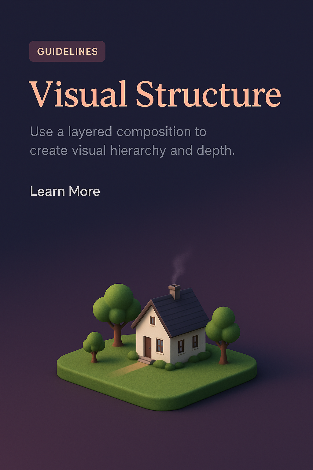 /Collection: /by davooda/Type: PNG/A zoomed-out 3D scene showcasing a small house surrounded by trees on a textured gradient background. The design emphasizes visual hierarchy with clear text elements.