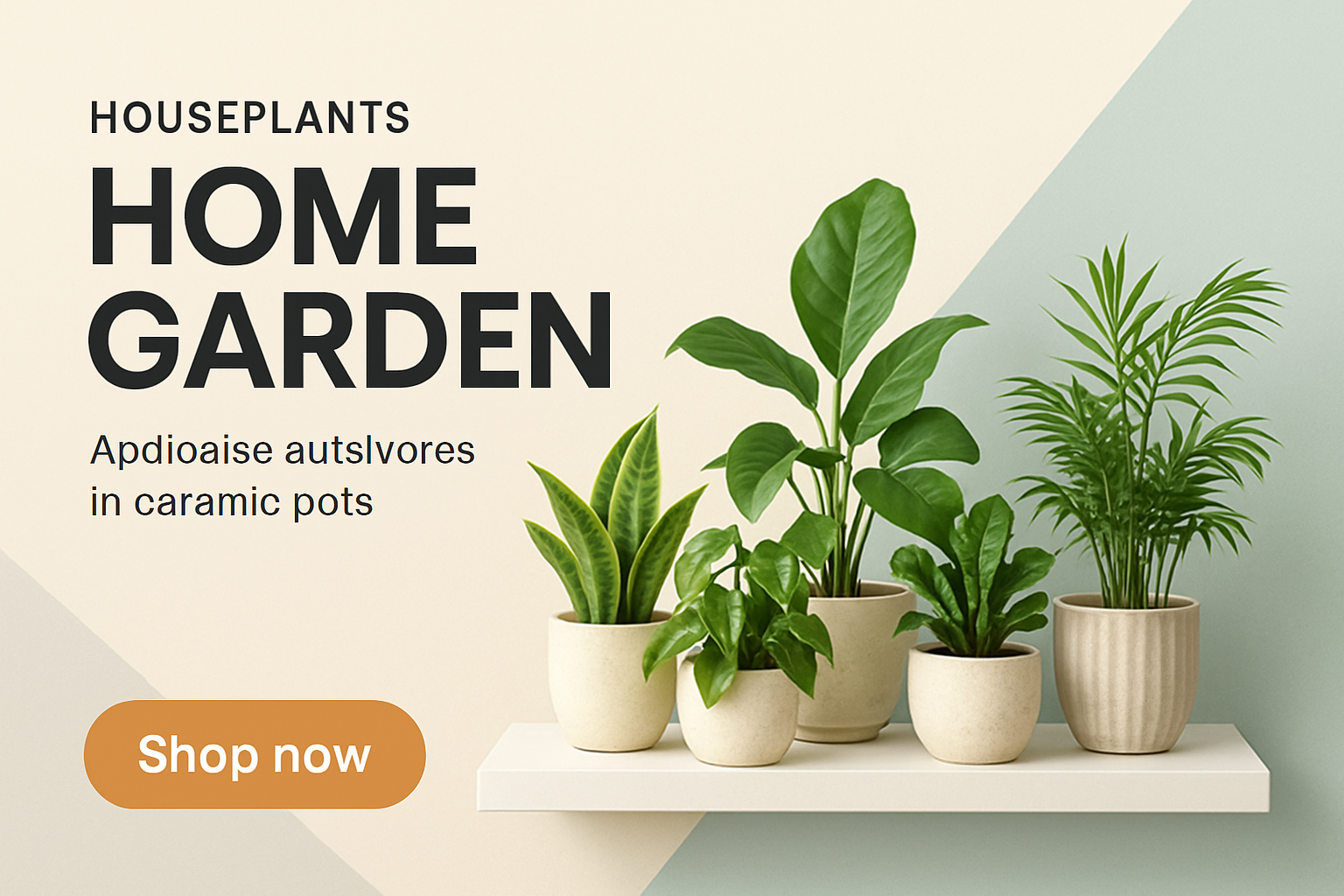 A beautifully arranged display of various houseplants in ceramic pots, set against a light, contrasting background. Perfect for home gardening enthusiasts.