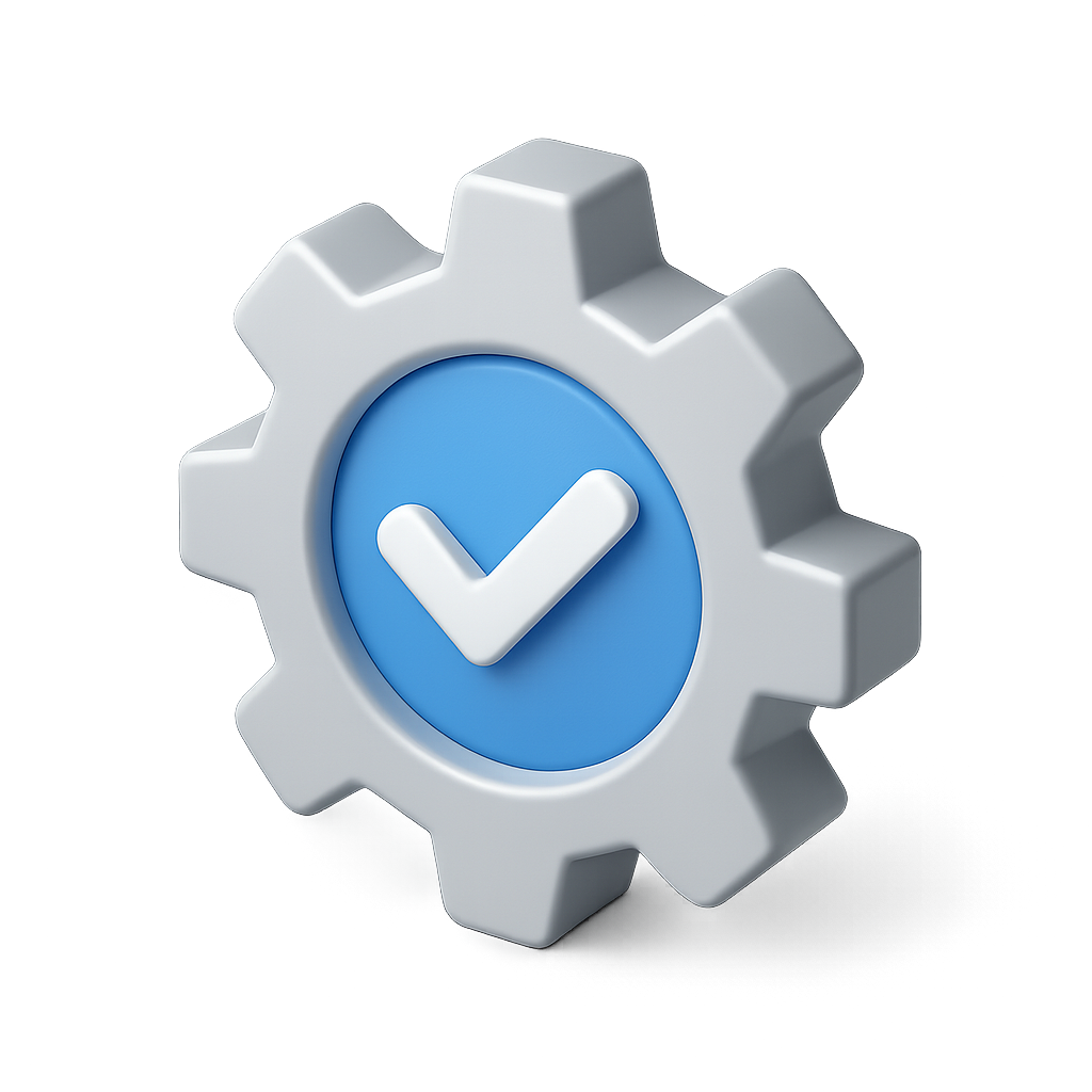 3D Gear Checkmark Icon - Volumetric Design