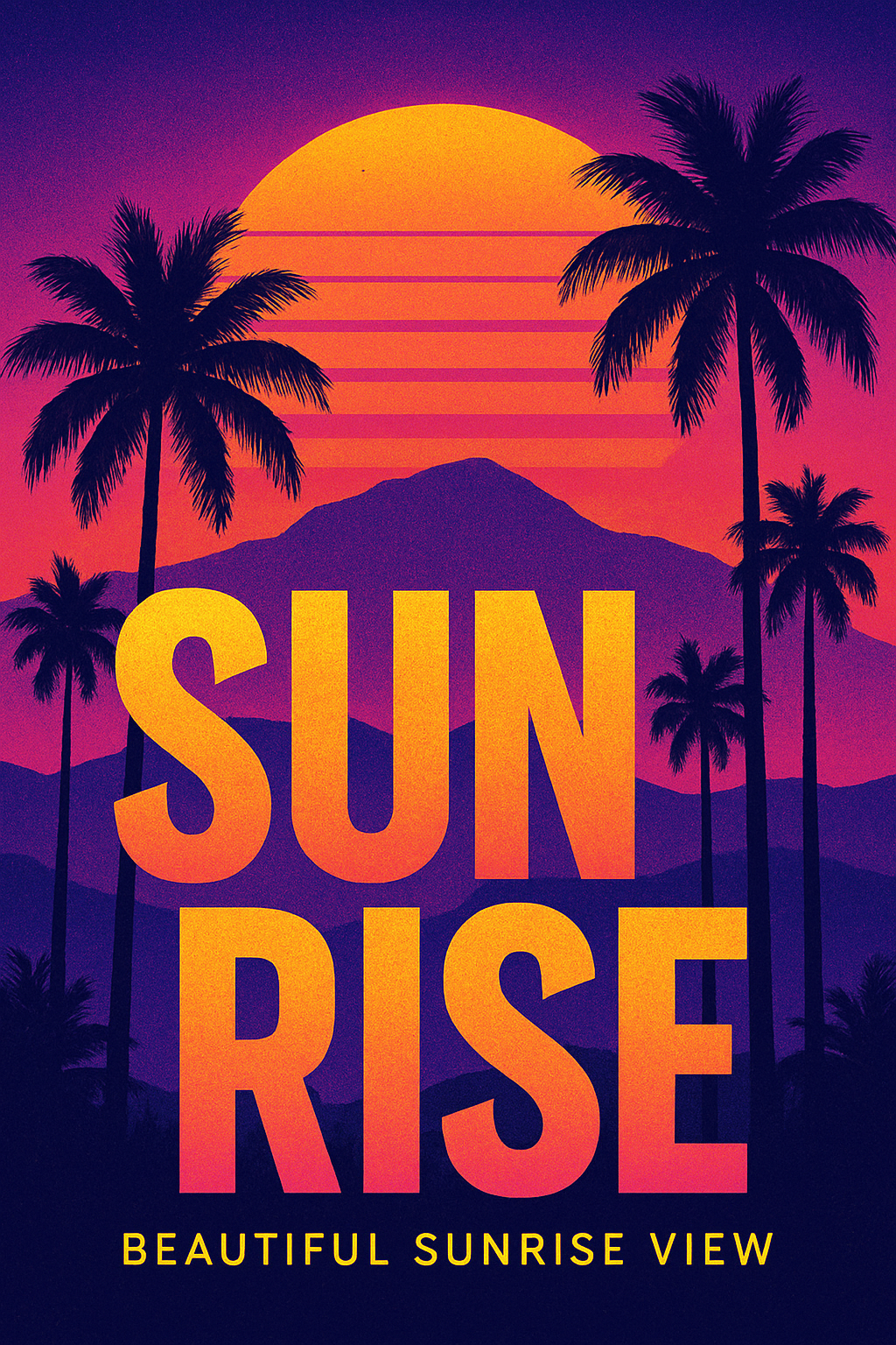 Vibrant Retro Sunrise Graphic with Palm Trees