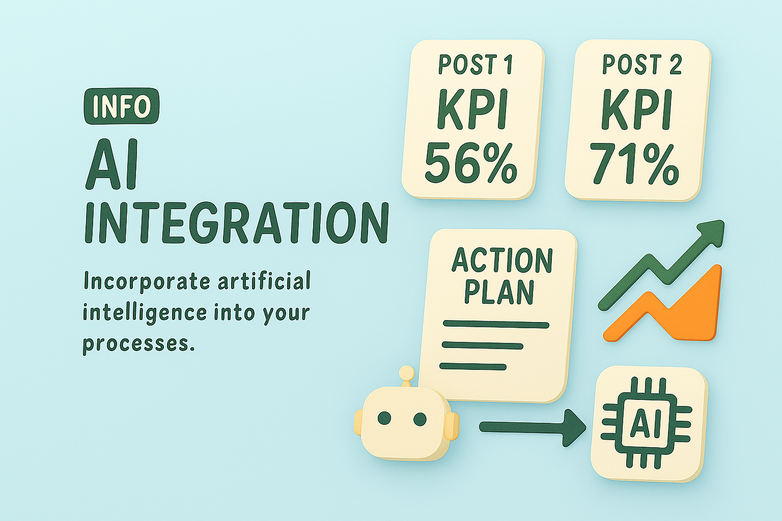 /Collection: /by davooda/Type: PNG/A visually engaging infographic highlighting AI integration with KPI metrics and an action plan, designed for professionals interested in technology and process improvement.
