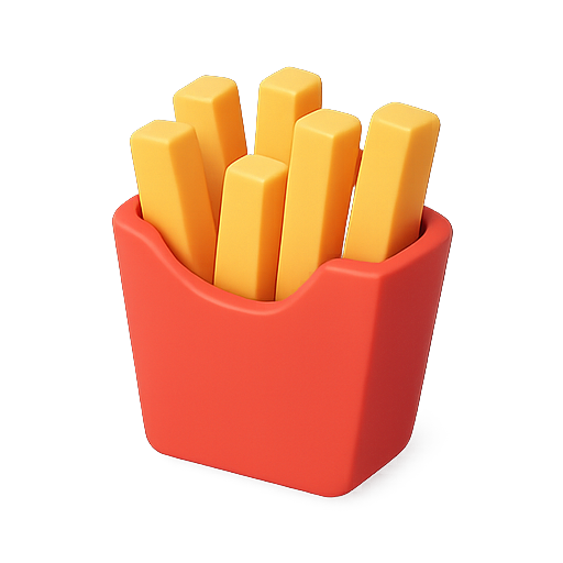 A visually appealing 3D render featuring a container of golden French fries, perfect for food-related designs or marketing materials. The simple and clean design makes it versatile for various applications.