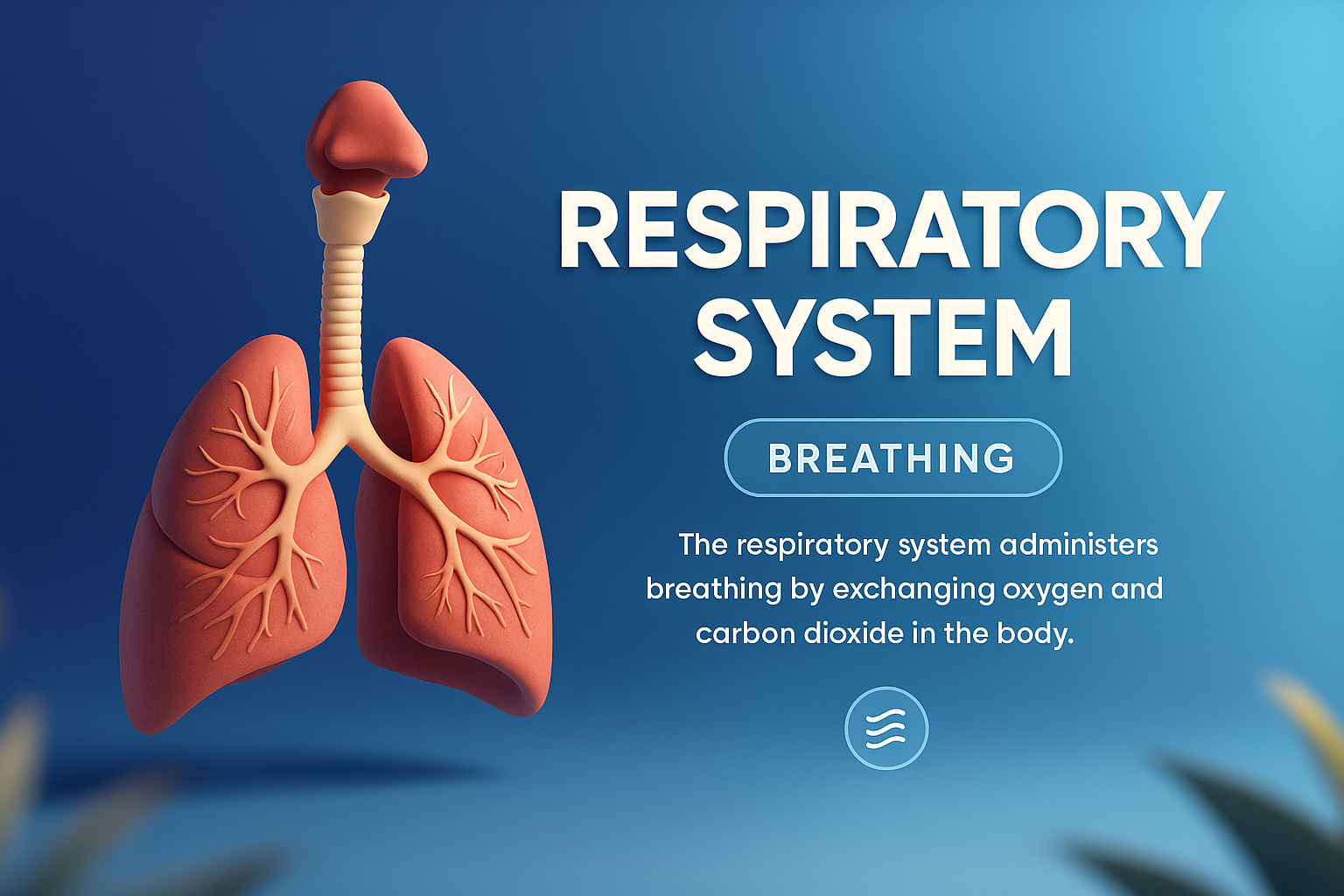 A visually striking 3D illustration showcasing the respiratory system, highlighting the lungs in a realistic style against a smooth gradient background. The design features clear, readable text elements.