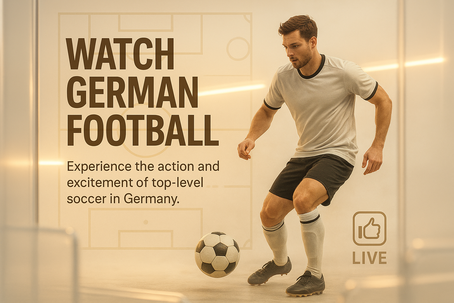 Dynamic promotional image for German football, featuring a player in action with engaging design elements. Ideal for sports marketing campaigns.
