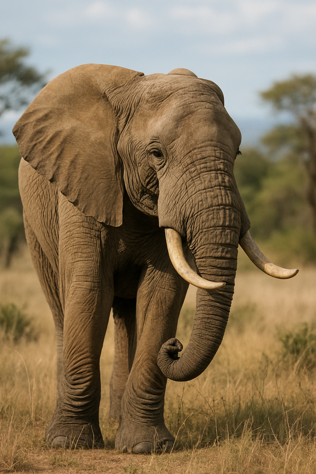 A striking portrait of an African elephant standing in its natural habitat, showcasing its impressive size and unique features. Ideal for wildlife photography enthusiasts and conservation campaigns.