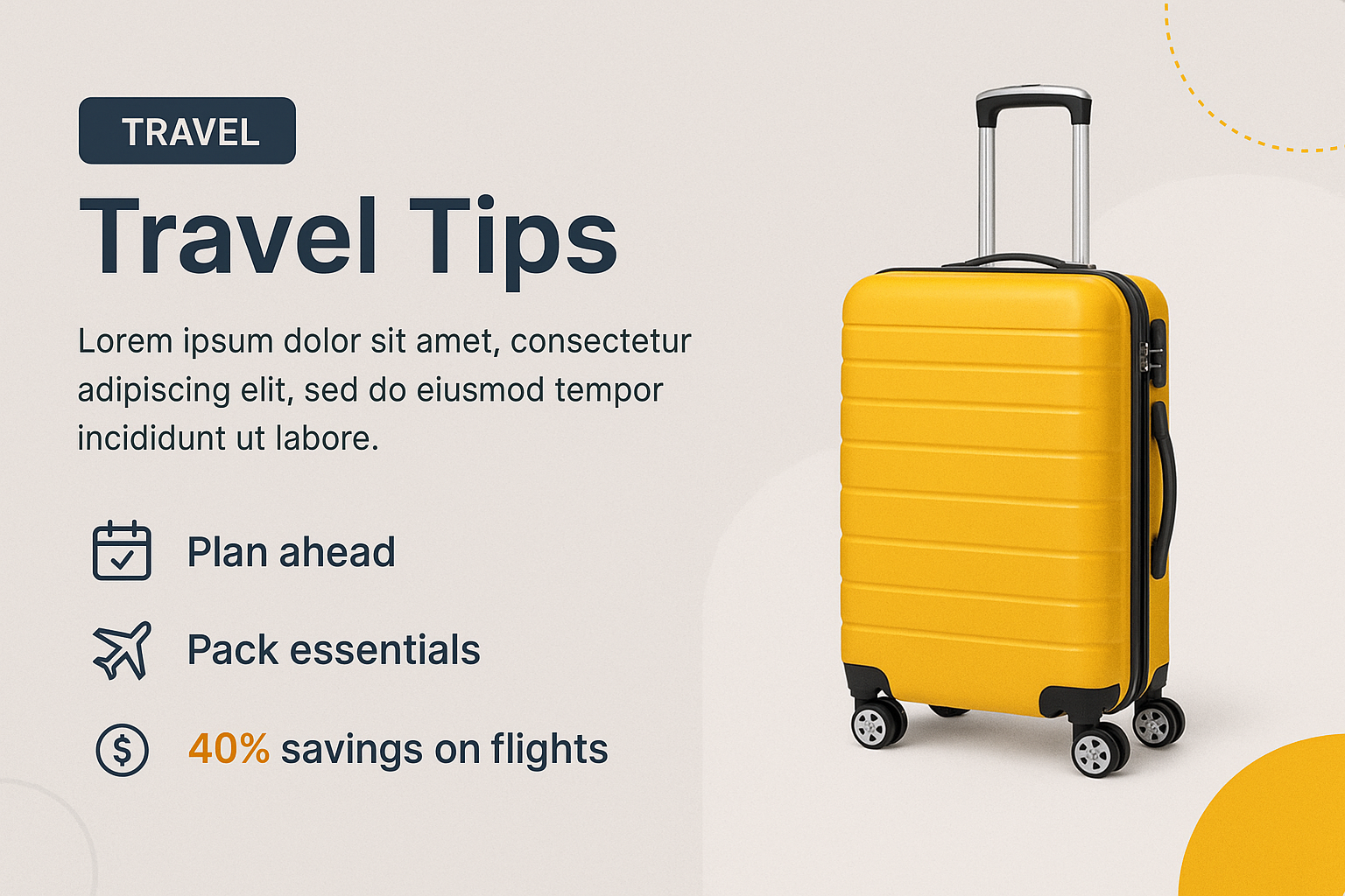 Travel Tips Graphic Featuring Luggage and Savings Information