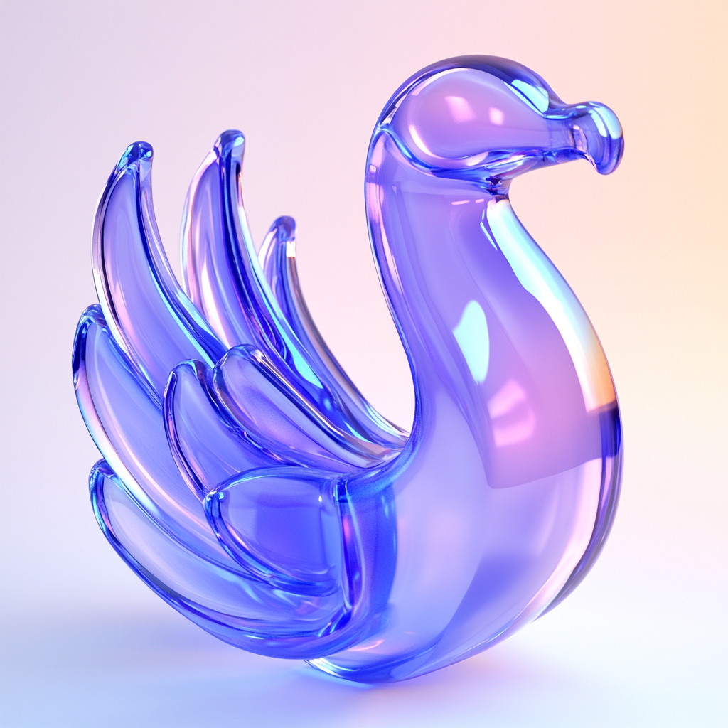 A modern glass sculpture of a swan, featuring a smooth, glossy finish and a gradient of soft blue and purple hues. Ideal for contemporary decor or artistic displays.
