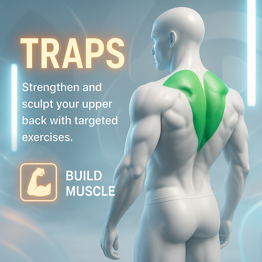 Fitness Promotional Graphic Highlighting Traps Workout Program
