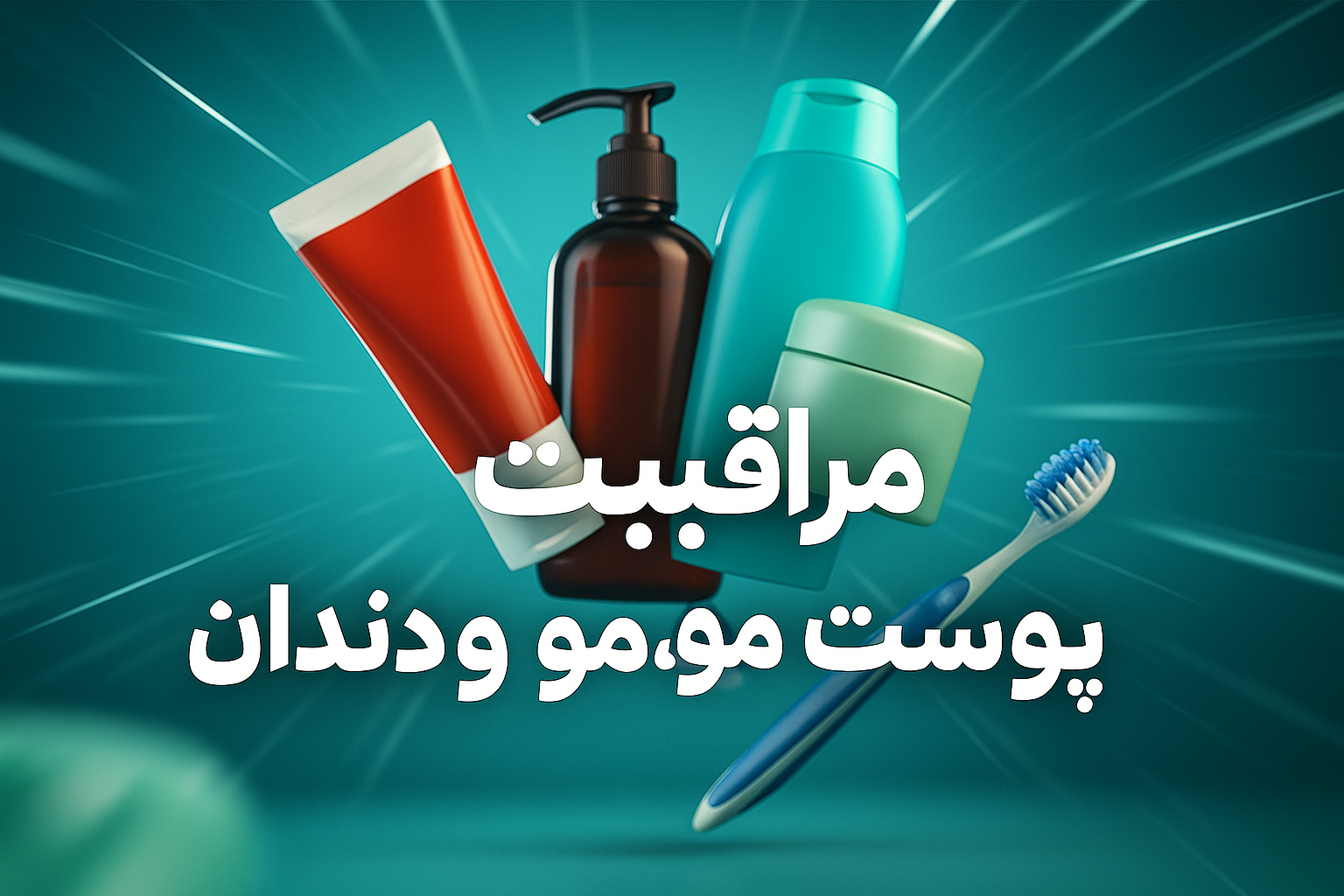 A vibrant 3D illustration showcasing various health care products for skin, hair, and dental care. The dynamic composition features a smooth gradient background and bold, engaging text.