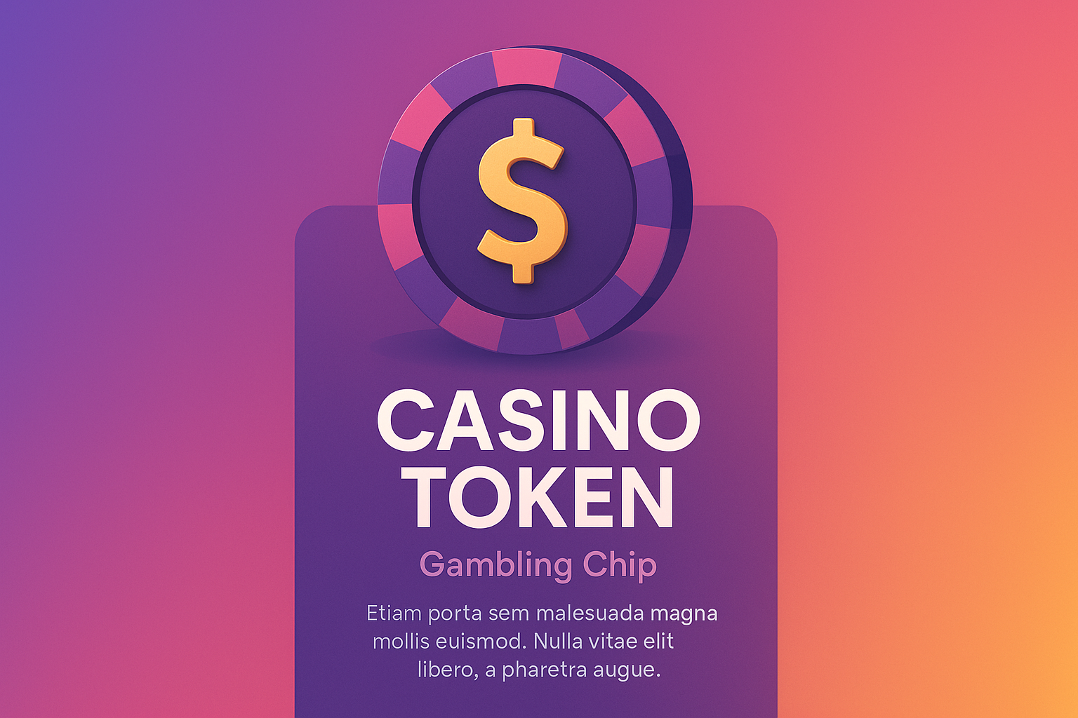 /Collection: /by davooda/Type: PNG/A vibrant casino token design featuring a layered gradient background. The main element is a circular chip with a dollar sign, accompanied by bold text highlighting 'CASINO TOKEN' and a subtitle.