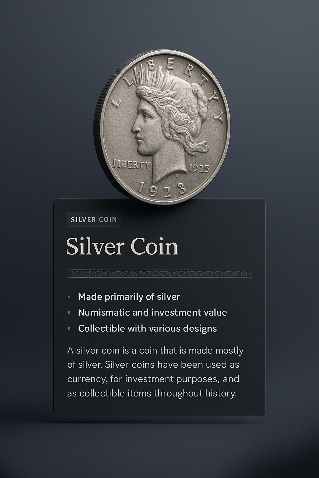 3D Silver Coin Illustration with Informative Overlay