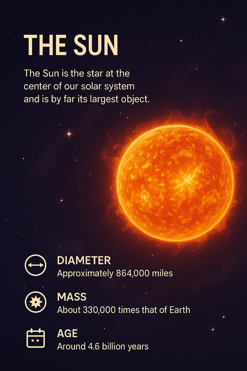 An engaging infographic highlighting key facts about the Sun, featuring a vibrant illustration and clear text layout, ideal for educational purposes.