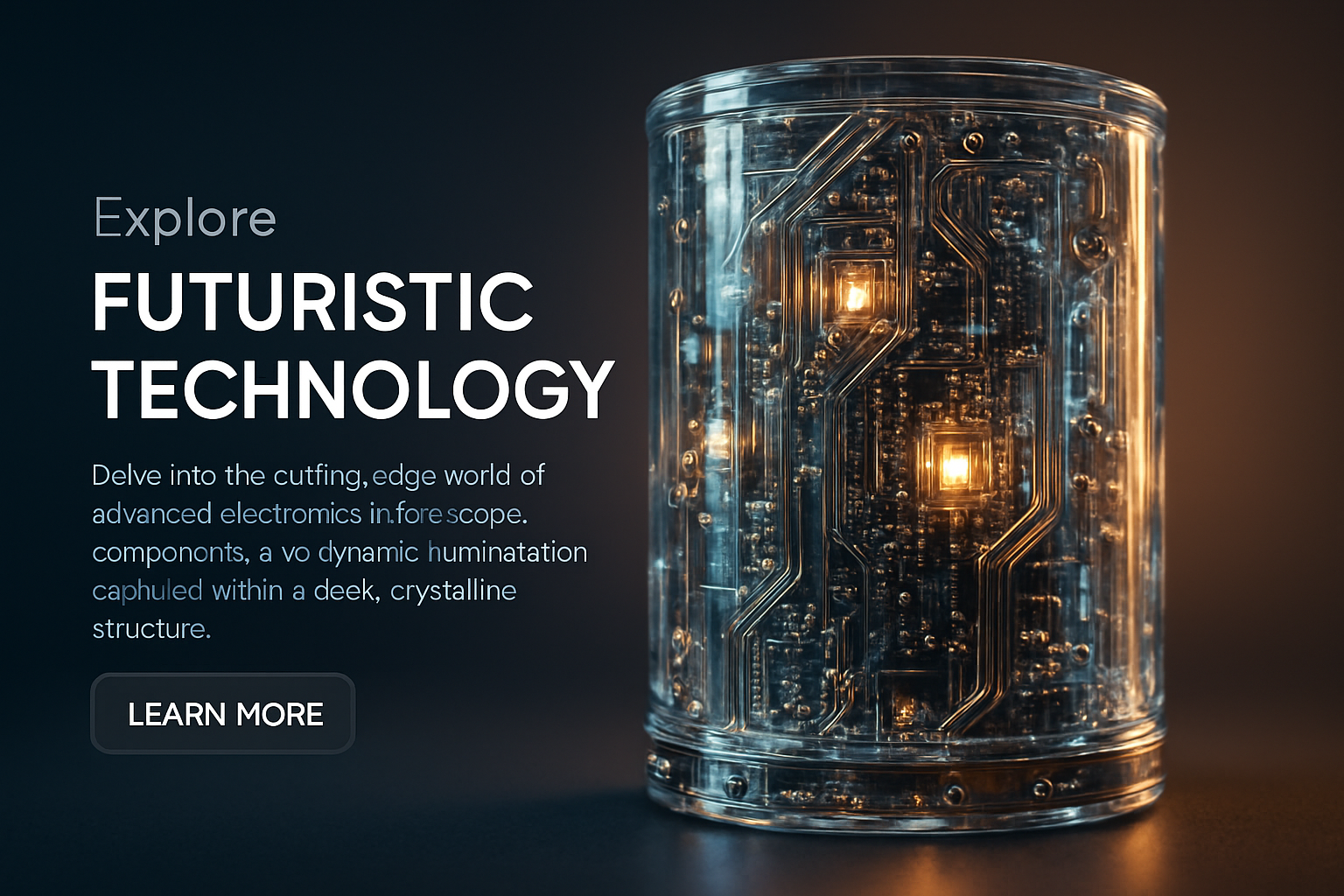 /Collection: /by davooda/Type: PNG/A stunning hyperrealistic 3D depiction of a transparent cylinder, revealing intricate internal components like micro-LEDs and circuit boards, illuminated with soft lighting.