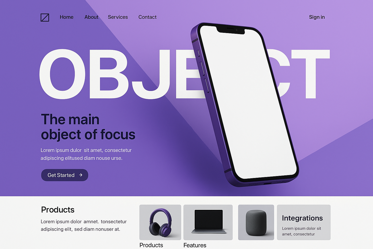 Innovative Landing Page Design with Purple Phone and Gradient Layers