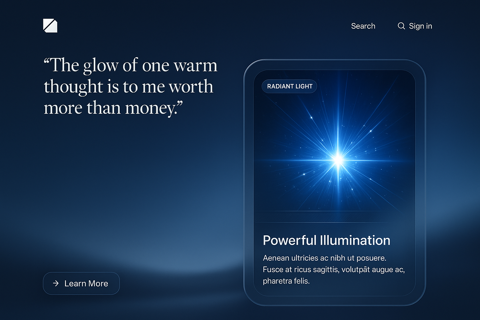 /Collection: /by davooda/Type: PNG/A sleek and modern landing page featuring a glowing light effect, a quote, and a clear call-to-action button. The design emphasizes depth and realism with layered visuals.