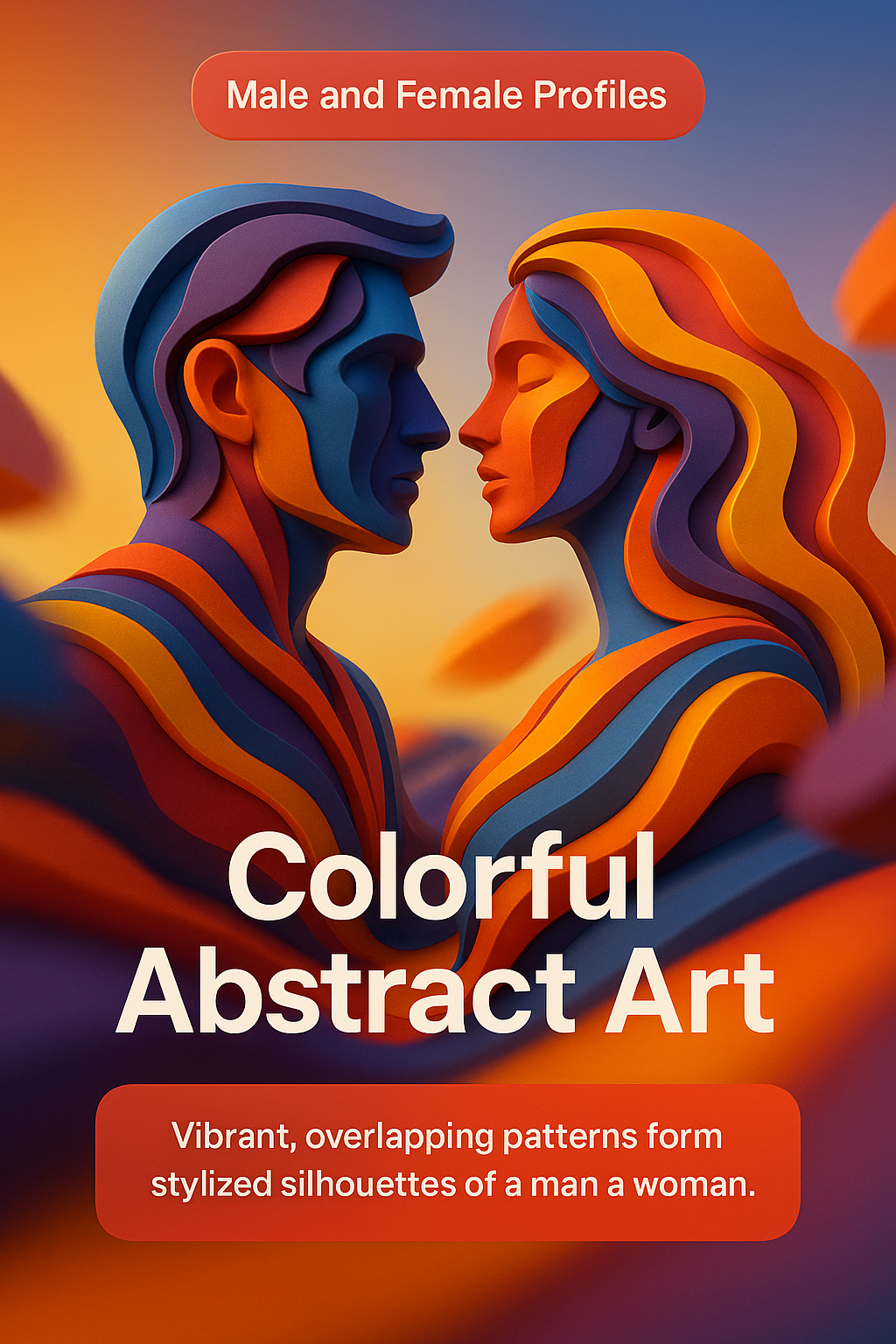 Colorful Abstract Profiles of Man and Woman in 3D Design