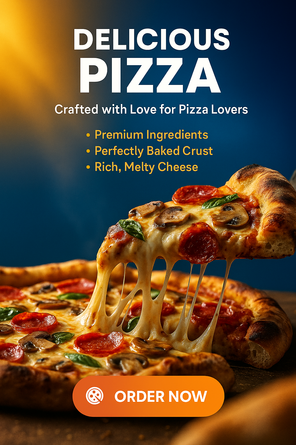 Delicious Pizza Promotional Graphic with Stretchy Cheese