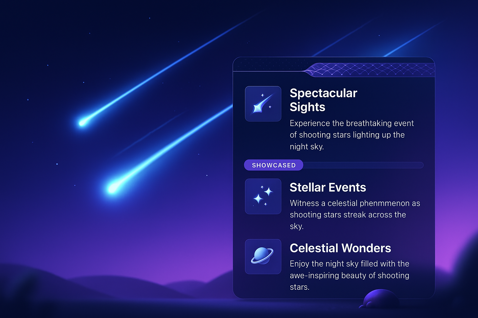 A stunning 3D illustration showcasing shooting stars illuminating a dark night sky. The scene features a gradient background with a captivating visual design.