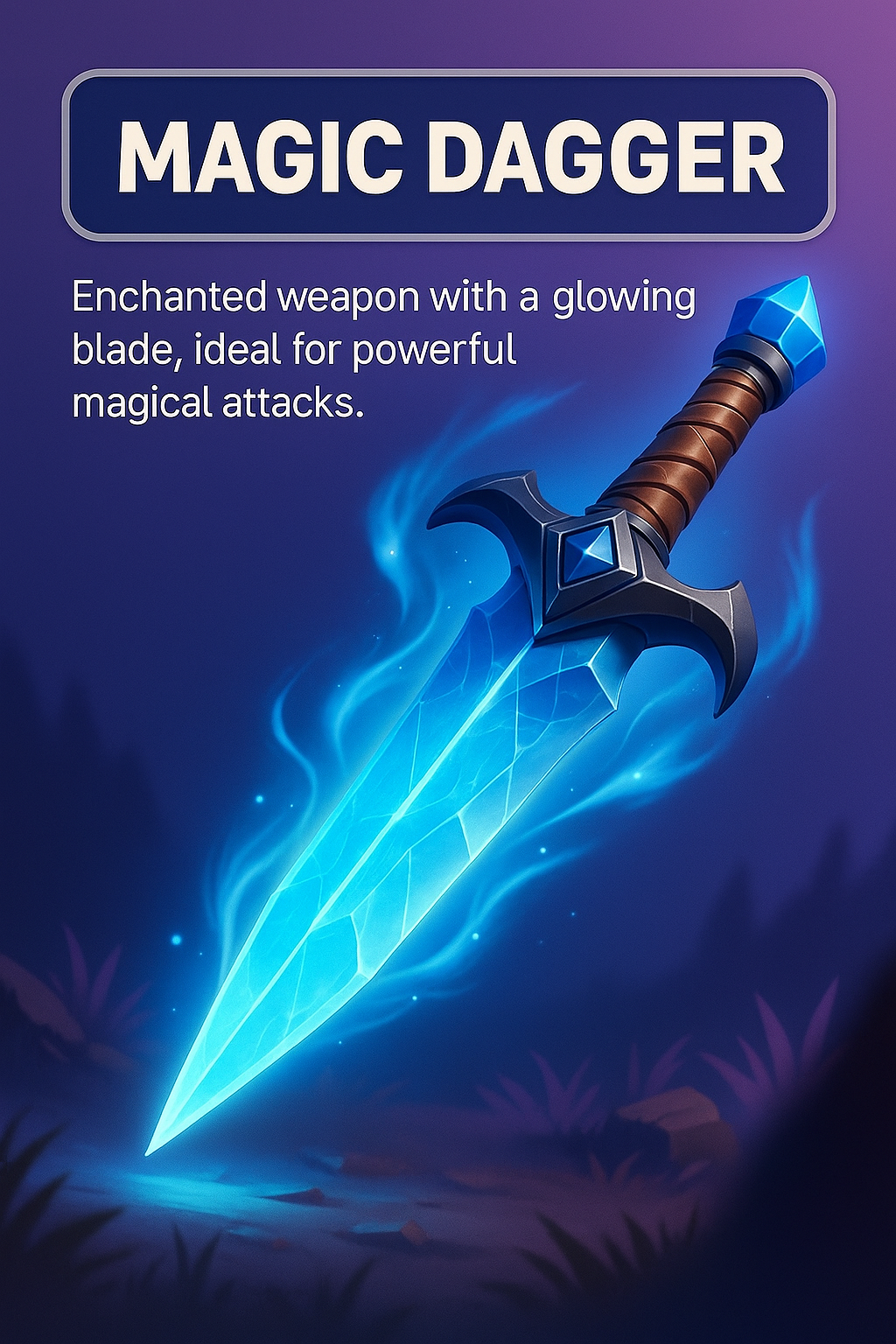 /Collection: /by davooda/Type: PNG/A visually striking 3D representation of a magic dagger with a glowing blue blade, set against a smooth gradient background. The design emphasizes realism and dynamic composition.