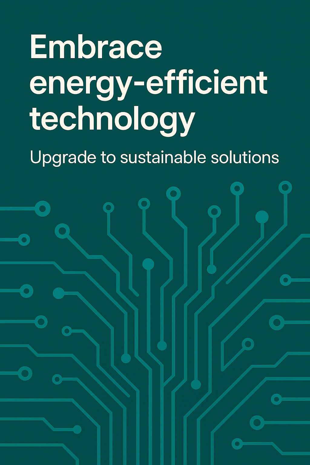 A sleek, modern graphic emphasizing energy-efficient technology with a circuit-like design, ideal for environmental campaigns or technology promotions.