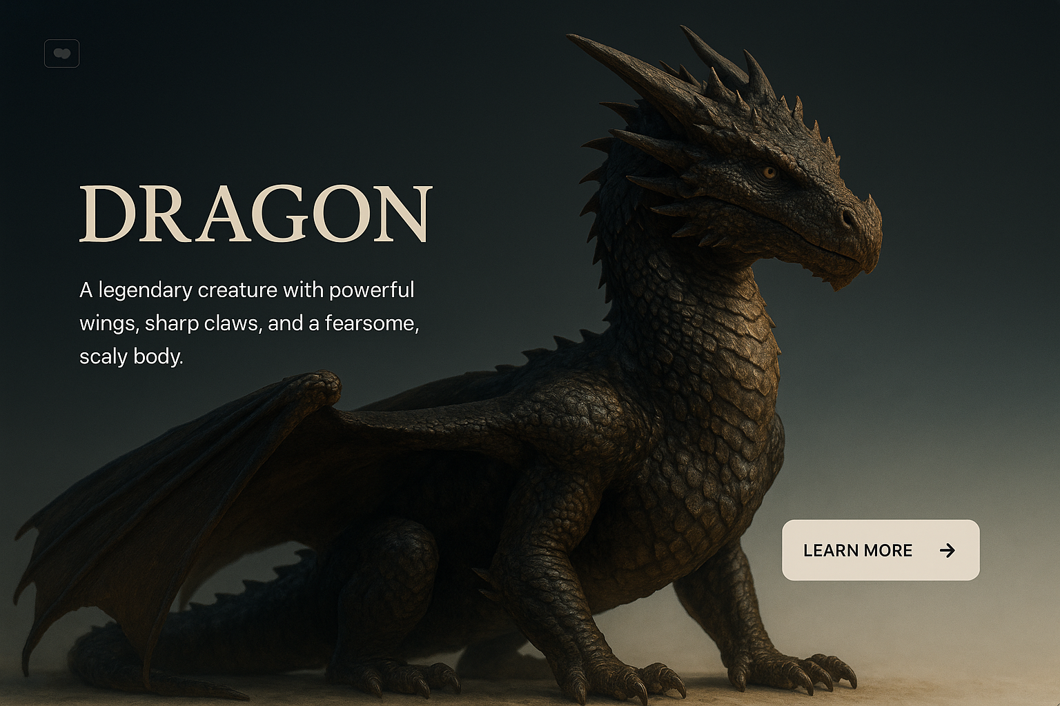 A realistic illustration of a dragon with intricate details, set against a gradient background. The design includes a prominent title and a call-to-action button.
