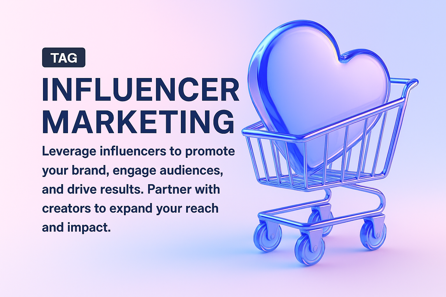 /Collection: /by davooda/Type: PNG/A modern 3D illustration showcasing a shopping cart with a heart symbol, emphasizing the theme of influencer marketing. Ideal for digital marketing campaigns and social media promotions.