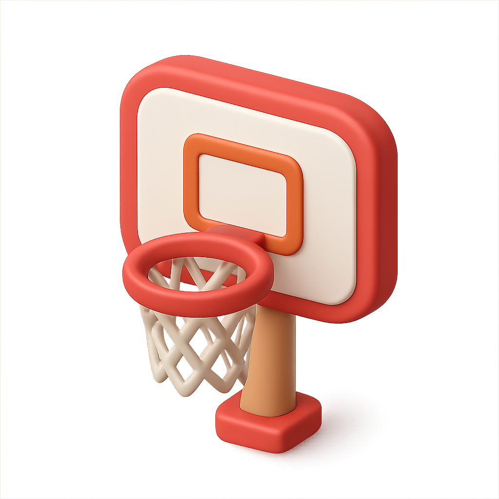 Stylized 3D Basketball Hoop Icon with Isometric View