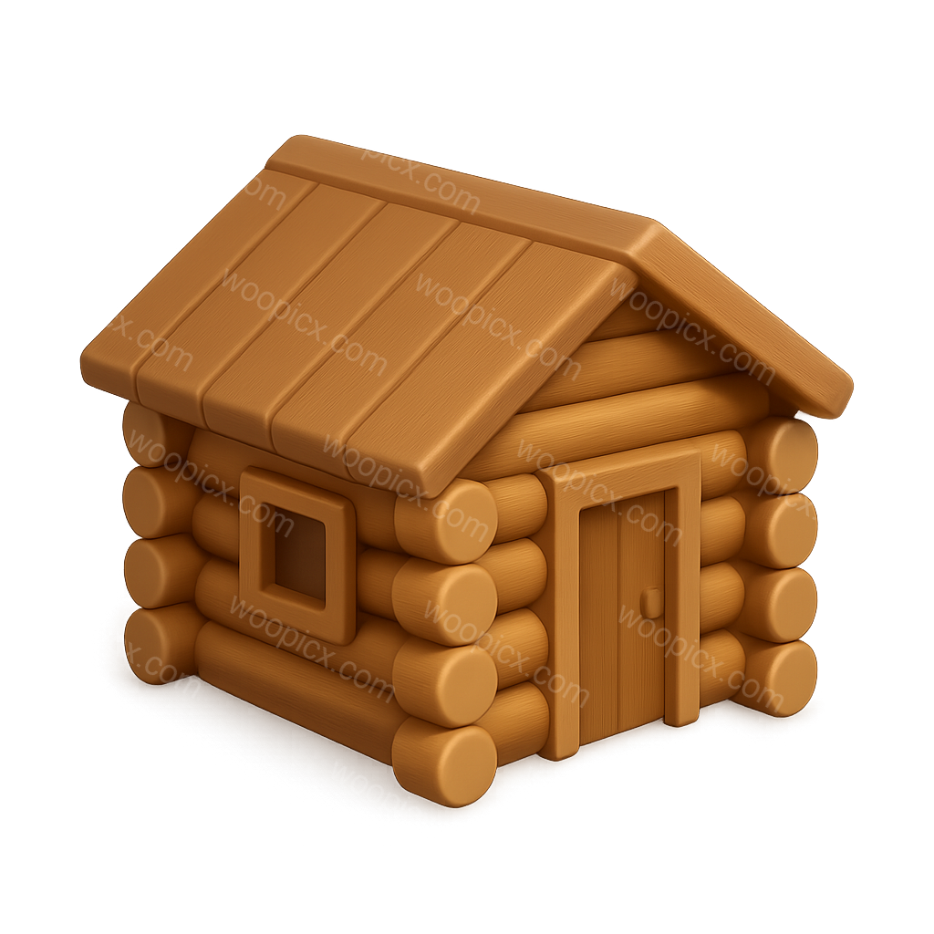 Stylized 3D Log Cabin Icon with Isometric View