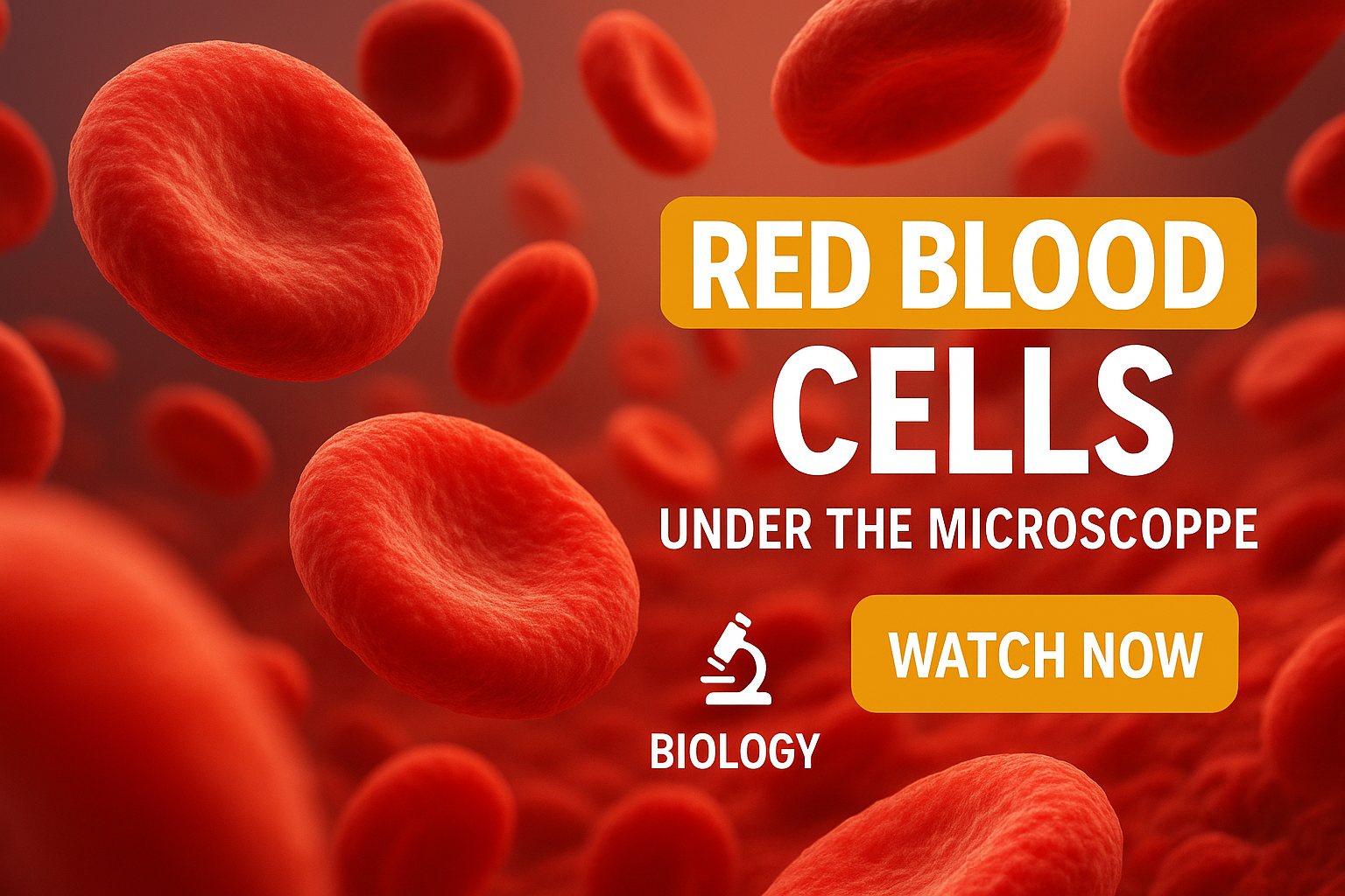 Engaging educational image depicting red blood cells as seen under a microscope, designed for biology-related content and online learning.
